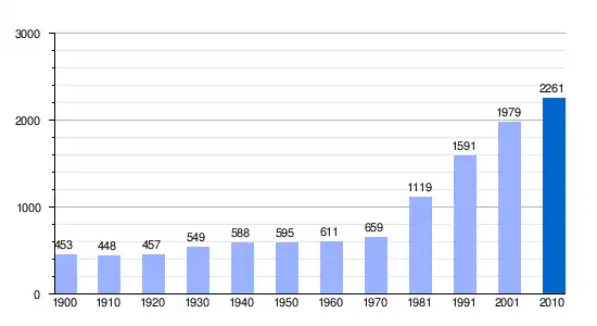 A 1 de enero de 2010 la población del municipio ascendía a 2261 habitantes, 1174 hombres y 1087 mujeres.[3]