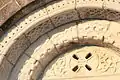 - Detalle del tímpano y las arquivoltas del pórtico principal.