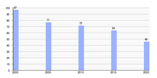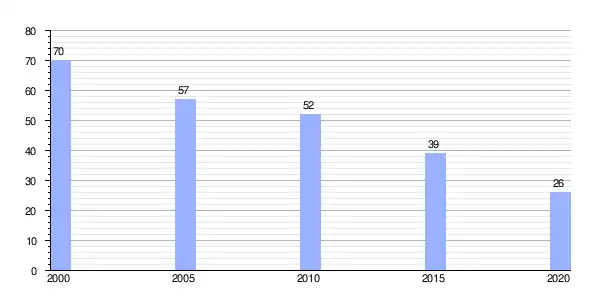 Gráfica de evolución demográfica de Toiriz (aldea) entre 2000 y 2020 |