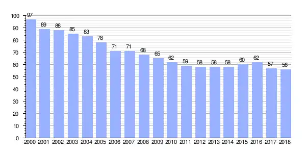 Gráfica de evolución demográfica de Monfero[3] entre 2000 y 2018 |