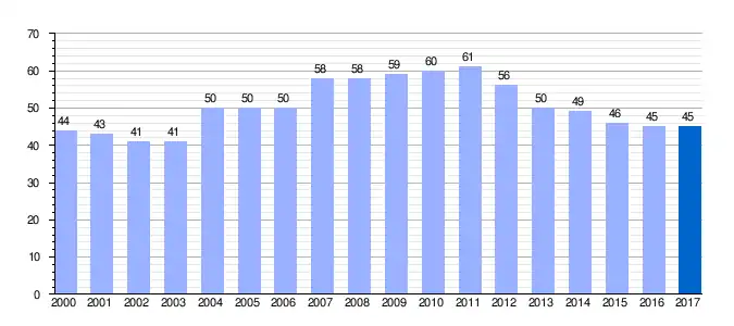 Población de derecho (2000-2017) según los censos de población del INE a 1 de enero de cada año.[2] |