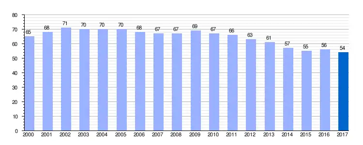 Gráfica de evolución demográfica de Santa María Tajadura entre 2000 y 2017 |