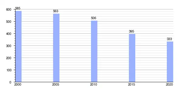 Gráfica de evolución demográfica de Bóveda (parroquia) entre 2000 y 2020 |