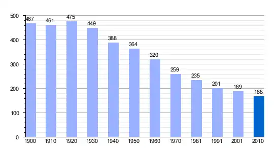 Población de derecho (1900-1991) o población residente (2001) según los censos de población del INE. Población según el padrón municipal de 2010 del INE. |