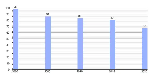 Gráfica de evolución demográfica de Ferroy entre 2000 y 2020 |