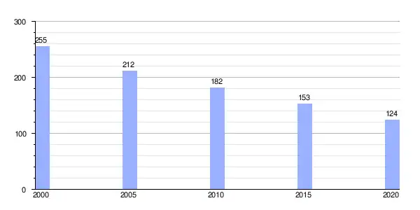 Gráfica de evolución demográfica de Mao entre 2000 y 2020 |