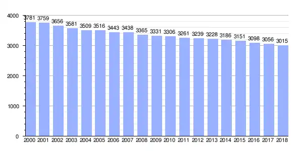 Gráfica de evolución demográfica de Neda entre 2000 y 2018 |