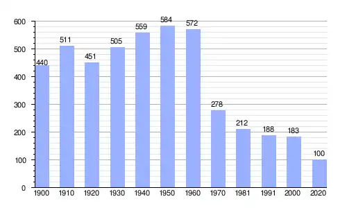 Gráfica de evolución demográfica de Santa María de Sando entre 1900 y 2020 |