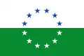 Bandera rectangular de proporciones 2:3, formada por dos franjas horizontales iguales, blanca la superior y verde la inferior, con doce estrellas de cinco puntas en círculo siendo azules las de franja blanca y blancas las de la franja verde.Boletín Oficial de Castilla y León n.º 20 de 30 de enero de 2006[4]