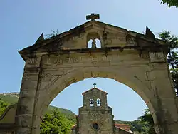 Es un arco de piedra construido al exterior de la iglesia, en la entrada del recinto. La obra se llevó a cabo entre 1660 y 1661 y su ejecutor fue el maestro cantero Francisco de Cueto, vecino de Güemes. Se hizo por donación del Capitán Antonio Ortiz del Hoyo.