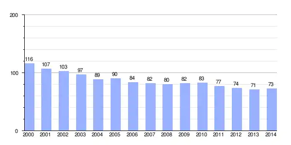 Gráfica de evolución demográfica de Santa María del Río (León)[2] entre 2000 y 2014 |