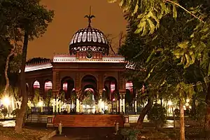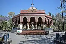 Data de finales del siglo XIX, cuando fue diseñado por el ingeniero José Ramón Ibarrola para ser el Pabellón de México en la Exposición Universal de 1884-1885. Su estructura (conformada por varios arcos y columnas neoárabes está realizada completamente en hierro, material de construcción en boga en aquella época, y es probable que se haya fundido en Pittsburgh, Pennsilvania, en hornos propiedad del magnate norteamericano Andrew Carnegie, debido a la relación de amistad que tenía con el diseñador del kiosco.