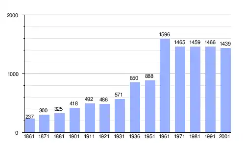 Gráfica de evolución demográfica de Santa Maria Coghinas entre 1861 y 2001 |
