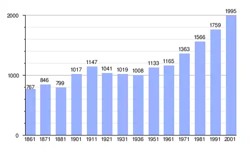 Gráfica de evolución demográfica de Santa Maria Hoè entre 1861 y 2001 |