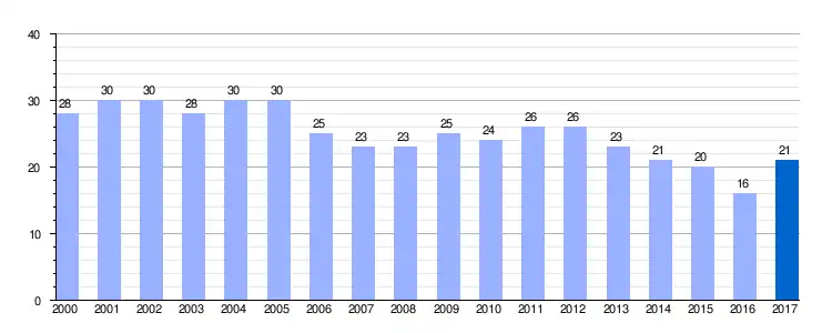 Gráfica de evolución demográfica de Santa Marina de Somoza entre 2000 y 2017 |