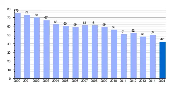 Gráfica de evolución demográfica de Santa Marinica[2] entre 2000 y 2021 |