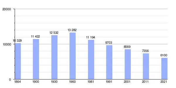 Gráfica de evolución demográfica de Santa Marta de Penaguião entre 1864 y 2021 |