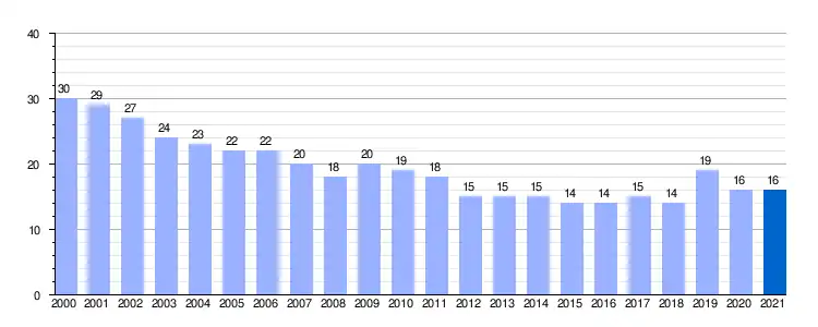 Gráfica de evolución demográfica de Santa Olalla de Valdivielso entre 2000 y 2021 |