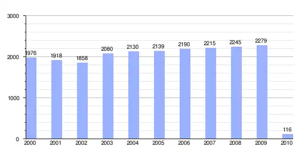 Gráfica de evolución demográfica de Jubia entre 2000 y 2010 |