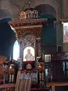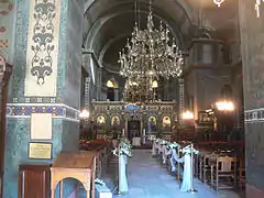 En la época iconoclasta, el ábside de la iglesia fue decorada con mosaicos de oro en el que solo hay una gran cruz, al igual que la Santa Irene en Constantinopla y la iglesia de la Dormición en Nicea. La cruz fue sustituida por la imagen de la Theotokos (la que dio a luz a Dios, o María) en 787-797 después de la victoria de los iconódulos. El mosaico en la cúpula ahora representa la Ascensión de Jesús con la inscripción de los Hechos 1:11 «Varones galileos, ¿por qué estáis mirando al cielo?». La cúpula está rodeada por las figuras de los Doce apóstoles, la Virgen María y dos ángeles.