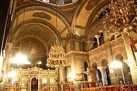Gran parte de la decoración interior fue enyesado después del gran incendio de Salónica de 1917. La cúpula no fue restaurada hasta 1980.[3]