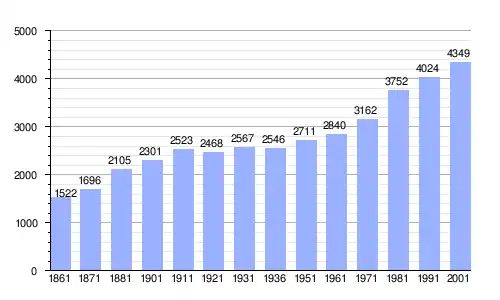 Gráfica de evolución demográfica de Santa Teresa Gallura entre 1861 y 2001 |
