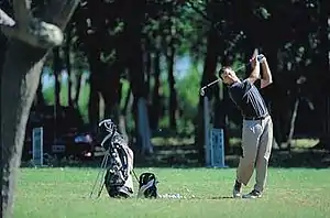 Alejada del mar y los vientos y protegida por forestación, se encuentra la cancha proyectada por Luther Koontz en 1950; cuenta con 18 hoyos,( ahora 9 ) el predio es de 54 ha. Es freeway, y está abierto todo el año. Hay torneos abiertos que se juegan los fines de semana. Se dictan clases. El club house cuenta con servicio de bar, comedor, y canchas de tenis. Fue declarado de interés Turístico Provincial en 1988.