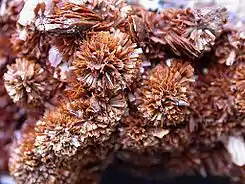 Hábito cristalino | Prismas alargados o aplanados en racimos | |