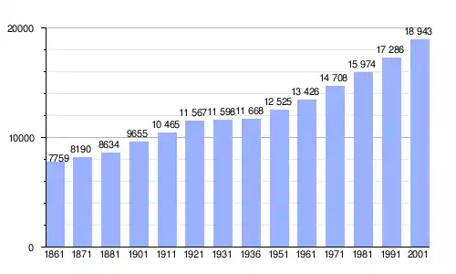 Gráfica de evolución demográfica de Santarcangelo di Romagna entre 1861 y 2001 |