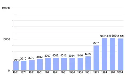 Gráfica de evolución demográfica de Santena entre 1861 y 2001 |