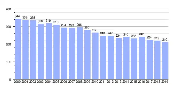 Gráfica de evolución demográfica de Mera de Baixo entre 2000 y 2019 |