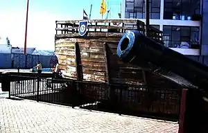 ![]() Réplica de la carabela Santiaguillo en el muelle Prat de Valparaíso | ||