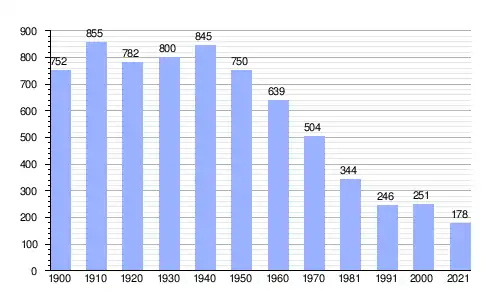Gráfica de evolución demográfica de Santibáñez de la Sierra entre 1900 y 2021 |