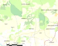 - Situación de Santigny en un mapa de Francia y de comunas limítrofes (en francés)