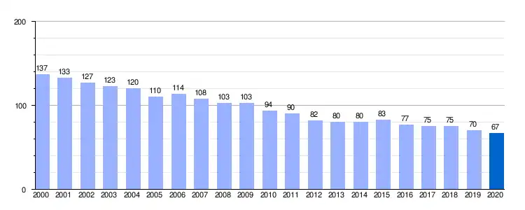 Gráfica de evolución demográfica de Santillana de Campos entre 2000 y 2020 |
