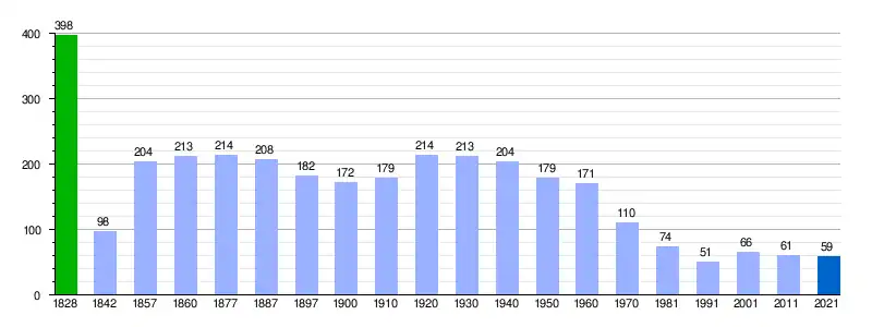 Población según el Diccionario geográfico-estadístico de España y Portugal de Sebastián Miñano.[5] Población de derecho (1842-1991, excepto 1857 y 1860 que es población de hecho) o población residente (2001-2011) según los Censos de Población desde 1842. Población según el padrón municipal de 2021 del INE. |