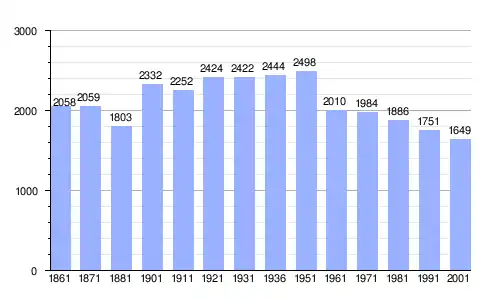 Gráfica de evolución demográfica de Santopadre entre 1861 y 2001 |