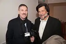 ![]() Santos Zunzunegui con el cineasta Víctor Erice en el XIV Congreso internacional de la Asociación Española de Historiadores del Cine el 28 de noviembre de 2013. | ||