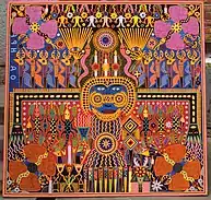 Sobre este trabajo, el investigador Miguel Gleason comenta en su libro México insólito en Europa: “Es quizá la obra más impresionante y laboriosa en Europa, conformada por más de dos millones de chaquiras y que muestra la cosmogonía de ese pueblo (huichol)”.[4]