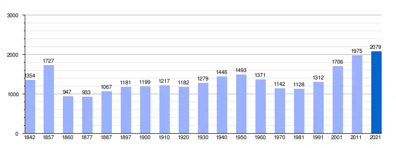 Gráfica de evolución demográfica de Santovenia de la Valdoncina[4] entre 1842 y 2021 |