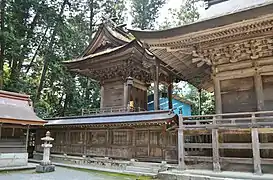 - Esta obra contiene una traducción derivada de «Iwa Shrine» de Wikipedia en inglés, concretamente de esta versión, publicada por sus editores bajo la Licencia de documentación libre de GNU y la Licencia Creative Commons Atribución-CompartirIgual 3.0 Unported.