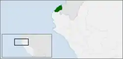 ![]() Mapa de localización del departamento de Tumbes en el Perú. | ||