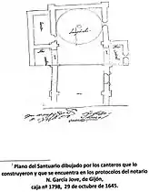 El 10 de mayo de 1636, los vecinos de Ceares otorgaron una escritura ante el notario Nicolás García de Jove sobre la feria o alcabala de «Nuestra Señora de Contrueces», fundamentalmente para fomentar la devoción a la «gloriosa imagen de Nuestra Señora» en su advocación de «Contrueces», ya que éste era un lugar muy frecuentado no solo por los vecinos de la villa de Gijón, sino por todo el Principado de Asturias.[30] Dos años más tarde, en 1638, el santuario era insuficiente para albergar a los devotos que acudían, además de encontrarse en estado de ruina. Debido a estos motivos el santuario fue demolido y se firmó en Gijón un acuerdo para levantar un nuevo templo. En el acuerdo, que se firmó el 20 de febrero de 1638, intervinieron «... de una parte Alonso Ramírez Jove, vecino y regidor de la villa, y mayordomo de la ermita, fábrica y obra de Nuestra Señora de Contrueces, y de la otra parte, Francisco de Cubas y Simontio, maestros cantería...».[31]