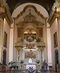 Originariamente, en el santuario hubo un monumental retablo barroco realizado por Pedro Costa, que fue destruido el 1936. El actual retablo data del 1958 y es obra del arquitecto Ramon Masferrer. Sobre la sacristía se encuentra el camarín de la Virgen, un ejemplar gótico que conserva rasgos románicos muy marcados. Se trata de una talla de madera de unos cincuenta centímetros de altura que representa a la Virgen sentada. Con la mano izquierda coge a su hijo situado derecho sobre la rodilla que sostiene un libro con la mano izquierda mientras bendice con la derecha. Con la mano derecha sostiene una golondrina, animal que se ha convertido en el símbolo de Queralt. El pie izquierdo de la Virgen pisa una comadreja. El 1916 la Virgen de Queralt fue coronada canónicamente. El santuario es un centro de gran devoción comarcal.
