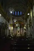 Su fachada es neoclásica y es de tres cuerpos de los órdenes dórico, jónico y corintio. Tiene bóvedas de arista con nervaduras que representan lirios que en torno representan la castidad.[4][5]