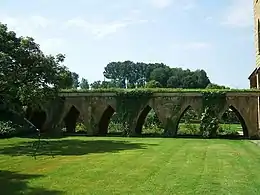 La ampliación moderna del monasterio, en la planta baja, reprodujo miméticamente las arcadas ojivales del claustro gótico; recorre esta galería las fachadas sur y este del recinto. El resto de la construcción es neogótico funcional siguiendo el estilo de las estructuras antiguas. También, se alzaron dos estructuras, a modo de torreones en los dos esquinazos de la fachada sur, así como, al sur del presbiterio de la iglesia, una torre de cubo que termina en un campanario octogonal rematado en un almenado liso, que es el elemento más emblemático del monasterio.