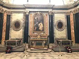 - Tumba dei reali al santuario di Vicoforte. A la izquierda está presente la tumba del duque Carlos Manuel I
