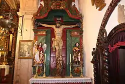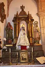 El retablo viejo tenía dos imágenes sobre sendas peanas que podrían ser de la Virgen y de san Juan. Antes de 1690 estaban situados en la única nave que tenía el templo, en el lado correspondiente a la epístola. En el inventario que se hizo en 1708 figuraban las imágenes de San Miguel y San Roque si bien en la actualidad solo queda una efigie del «Santísimo Cristo» ya que las otras dos se quemaron en un incendio en 1937.[29]