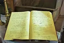 Los exvotos suelen consistir en objetos que se relacionasen con la petición hecha y concedida, como bastones, muletas o distintas partes del cuerpo sanadas, hechas en miniatura en cera blanca. En los últimos tiempos se habilitó un «libro de peticiones y agradecimiento» que todavía permanece, si bien son tomos que se han ido reponiendo sucesivamente según se completaba el anterior, ya que la cantidad de deseos, favores recibidos y muestras de agradecimiento fue creciendo, mientras que la costumbre de siglos anteriores de dejar exvotos ha ido disminuyendo, posiblemente por la mayor facilidad que ofrece el libro para expresar la devoción a la Virgen de Lugás. En el incendio que sufrió el santuario en 1937 desaparecieron una gran mayoría de los exvotos de cera.[38]