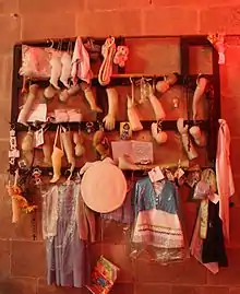 Desde que aquel labrador encontrase enterrada una estatua de madera de la Virgen mientras araba, el pueblo no ha cesado de poner bajo su protección e intercesión poderosa ante su Hijo necesidades de todo tipo: vidas y ganados, los que peligraban de perder un pie o una mano, los afectados de enfermedades, etc. Los que recibieron los favores pedidos solían llevar al santuario exvotos y dejarlos colgados en las paredes del santuario como ofrenda, recuerdo y modo de agradecimiento. Llegó el momento, como ocurre en otras iglesias y santuarios, que la cantidad de exvotos era tal, que hubo de destinarse una zona para ellos, de tal forma que se evitara que estuvieran dispersos por el santuario.